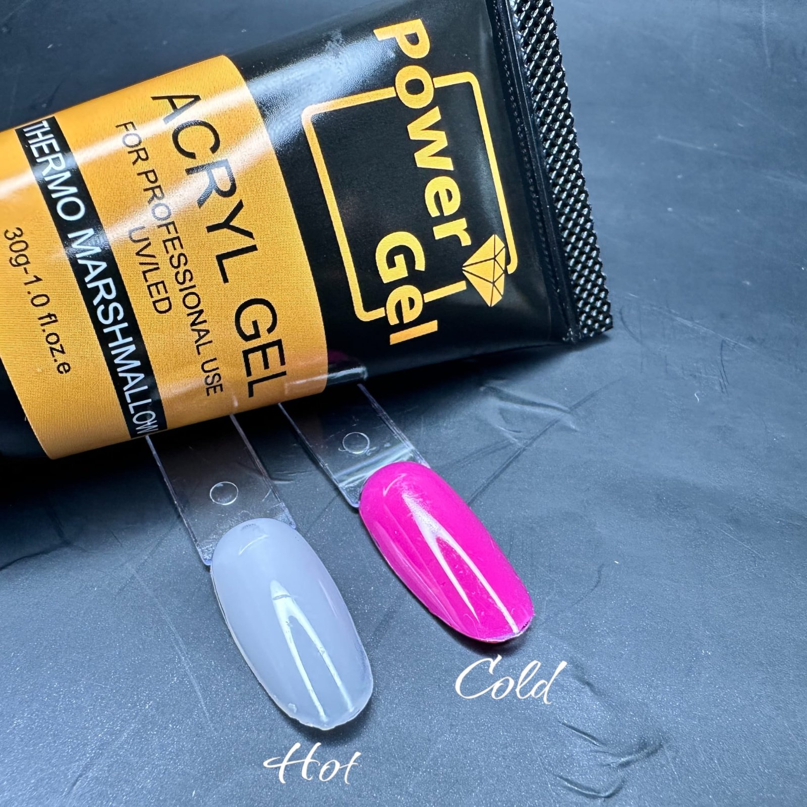 אקריגל טרמי מחליף צבעים בחום/קור ניתן לראות את הצבעים בתמונה
