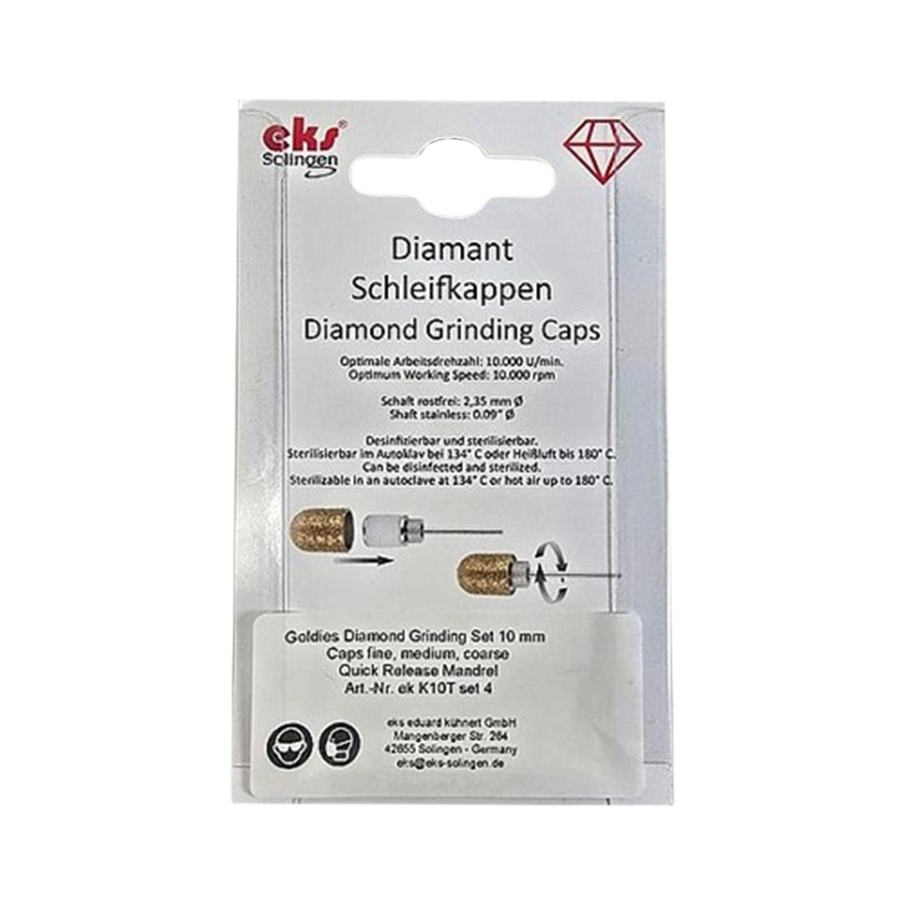 כיפת שיוף יהלום גודל 10מ"מ עם ציפוי טיטניום ניטרייד TIN – סט 3 רמות גסות + מנדרל .EK-K10TSET4