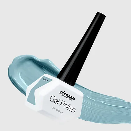 פיקאסו 187 אלזה ג'ל לק מקצועי בצבע כחול טורקיז מעושן בהיר .