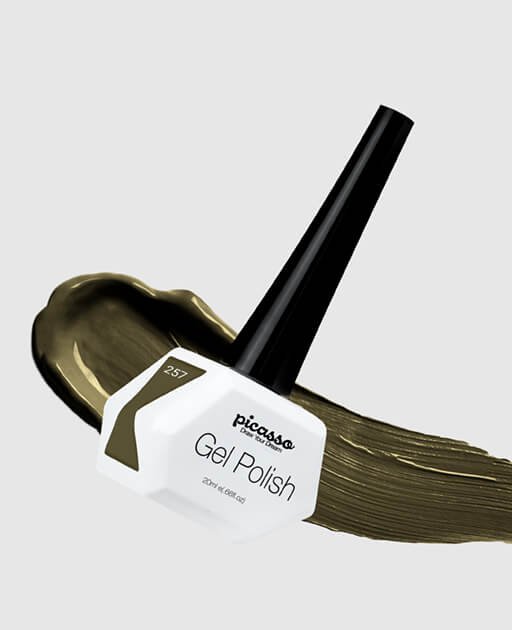פיקאסו 257 אמסטרדם ג'ל לק מקצועי בצבע ירוק חום כהה מעושן.
