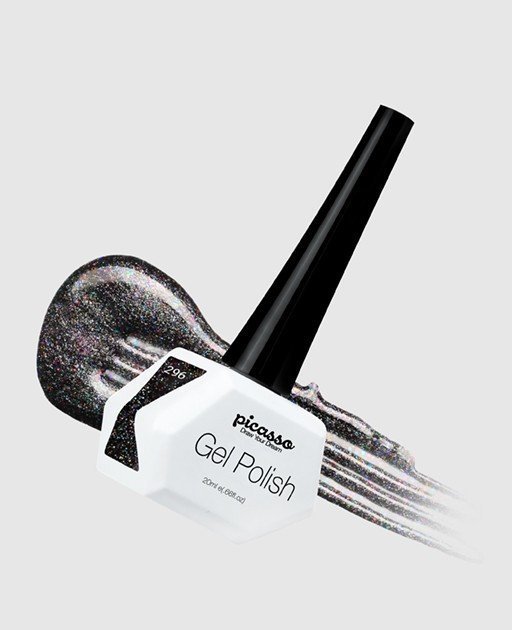 פיקאסו 296 שביל החלב ג'ל לק מקצועי בצבע נצנצים בגווני הקשת על רקע שחור גליטר דחוס.