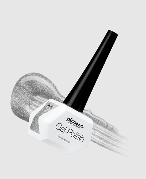 פיקאסו 300 טירת וינדזדור ג'ל לק מקצועי בצבע כסף מטאלי נוצץ מוברש .