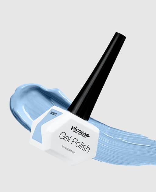 פיקאסו 335 מירה מלכת אטלנטיס ג'ל לק מקצועי בצבע כחול תכלת שמים בהירים.