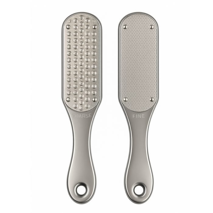 פצירת פדיקור מקצועית דו-צדדית עשויה מנירוסטה איכותית, בעלת שתי דרגות שיוף – צד גס (COARSE) להסרת עור קשה ומעובה, וצד עדין (FINE) לגימור מושלם והחלקת העור. הכלי אידיאלי לשימוש מקצועי בפדיקור סלולרי או טיפולי ספא, ומספק תוצאות מדויקות, חלקות ובטוחות.