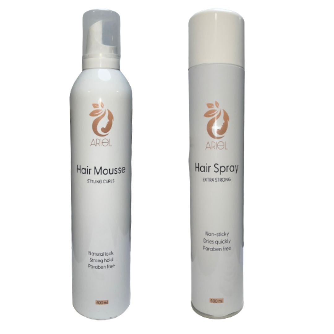 מוס לשיער 400 מ"ל + ספריי מקשיח לשיער 500 מ"ל מבית Ariel
