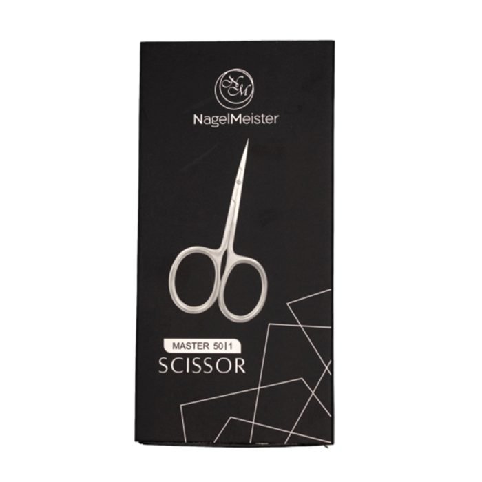 מספריים מקצועיות לעור מתוצרת NagelMeister, מדגם MASTER 50/1, באורך 98 מ"מ. המספריים מצוידות בלהבים צרים עם קימור קלאסי המיועדים לחיתוך מדויק ועדין של העור שמסביב לציפורניים. הן עשויות פלדת אל-חלד איכותית (AISI 420) ומושחזות בצורה ידנית על ידי בעלי מקצוע. בזכות ההשחזה המדויקת והעיצוב הארגונומי, המספריים מתאימות לשימוש מקצועי בסלוני מניקור, פדיקור וטיפוח ציפורניים.