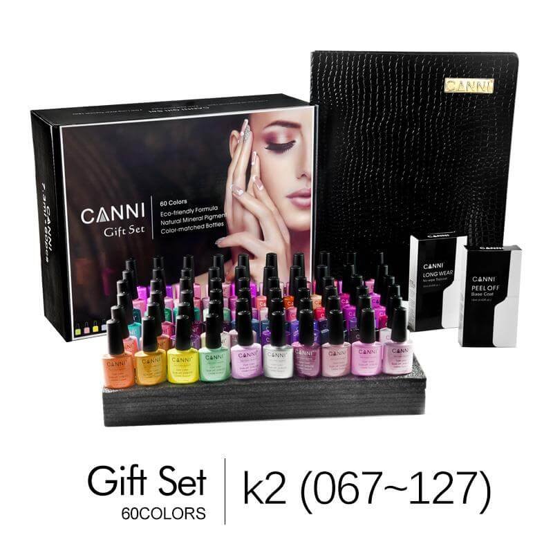 סט של 60 גוונים של לק ג'ל קאני בתוספת של בייס וטופ קוט באריזה מהודרת לחווית הלק המושלמת