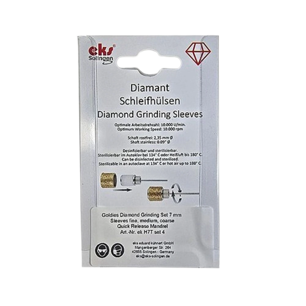 שרוול שיוף יהלום גודל 7מ"מ עם ציפוי טיטניום ניטרייד TIN – סט 3 רמות גסות + מנדרל .EK-H7TSET4