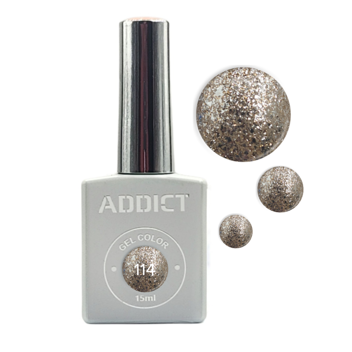 לק ג'ל 15 מ"ל | מס' 114 | גליטר ברונזה אטום | אדיקט ADDICT