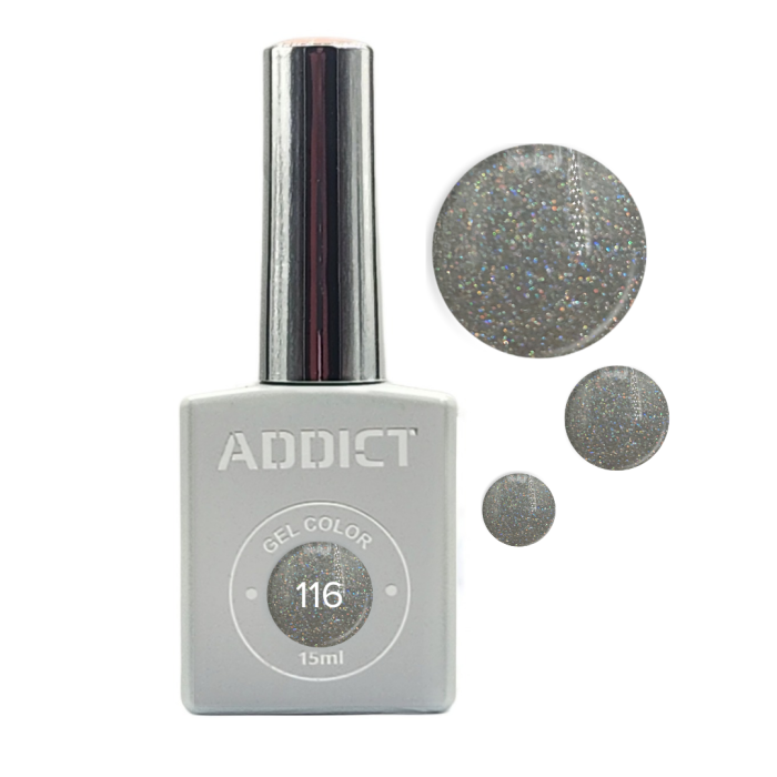 לק ג'ל 15 מ"ל | מס' 116 | נצנץ פלאש כסוף | אדיקט ADDICT
