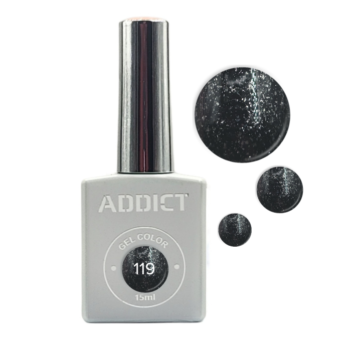 לק ג'ל 15 מ"ל | מס' 119 | שחור עם נצנצים כסופים | אדיקט ADDICT